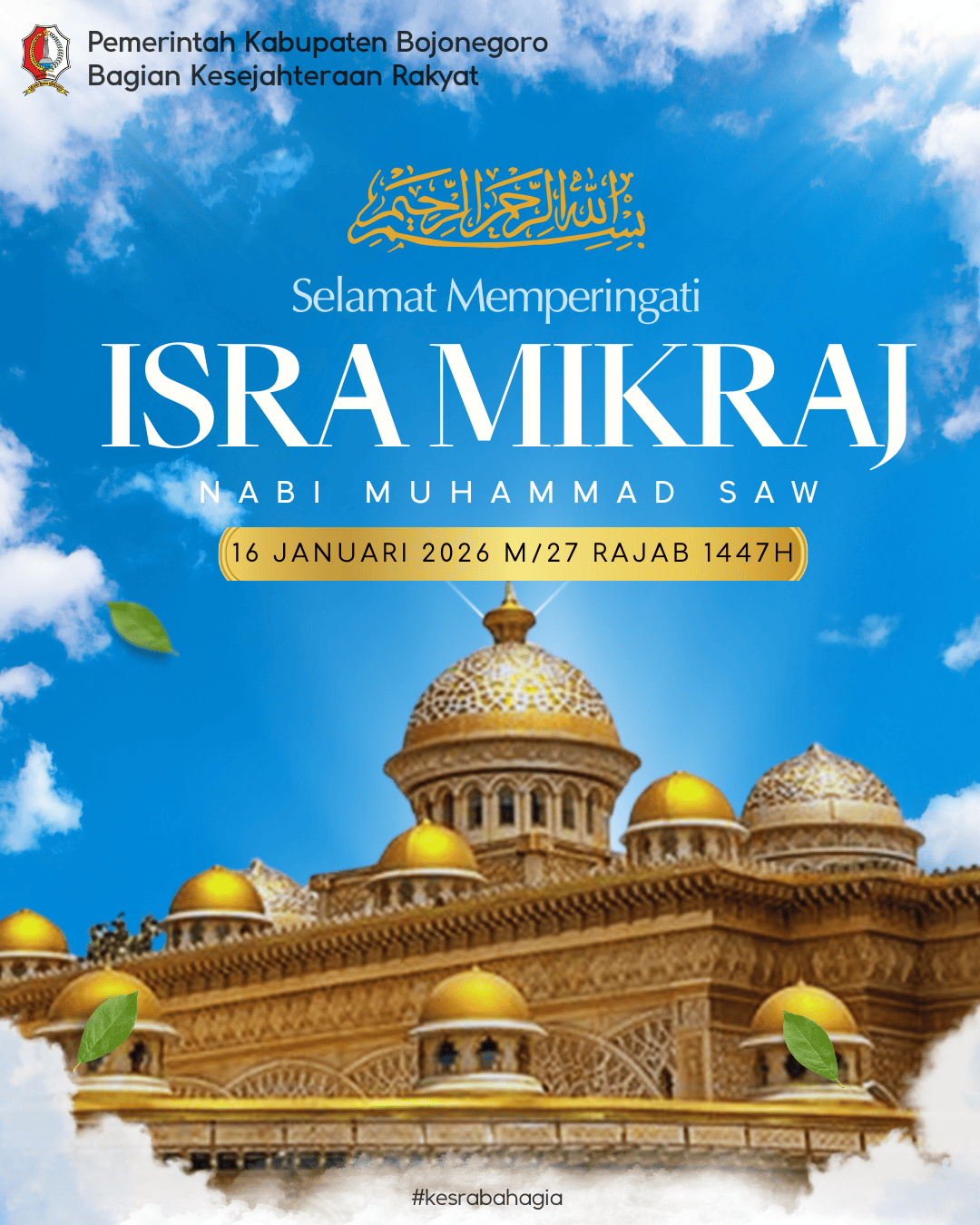 Semoga hikmah dari perjalanan agung Rasulullah SAW senantiasa menuntun kita menjadi pribadi yang lebih baik, lebih disiplin, dan lebih amanah. Dengan semangat kebersamaan dan keikhlasan, mari kita bangun Kabupaten Bojonegoro yang lebih bahagia, makmur, dan membanggakan.